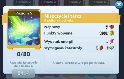 Poza Niszczycielem Tarcz, opisane niżej katastrofy stosowane są dość rzadko. Przyjrzyjmy się sprzętom wojennym, których wymagają, oferowanej punktacji na różnych poziomach ulepszenia, a także cenom i ilości kart i złotych kluczy potrzebnych do ich ulepszenia. Sprawdźmy, czy któraś z nich warta jest uwagi. Nazwa i typ energia /zniszczenia sprzętywojenne punkty poz.1 / poz. 5 / … Czytaj dalej ataki 7 /9 /10 energii
