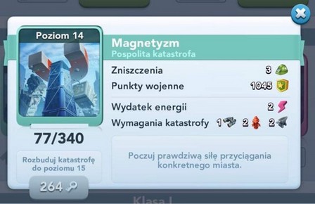 Pospolita katastrofa klasy M, do wywołania której wymagane jest użycie łącznie 5 przedmiotów wojennych: 1 x lornetka, 2 x hydrant , 2 x kowadło. Inne katastrofy, które także wykorzystują niektóre z tych przedmiotów to: Ogromny kamienny potwór, Z dala od Kansas, Rybna Katastrofa, Starożytna Klątwa, 16 ton, Pająki, Buty do Tańca, Portal Budowlany, Napad Złości, … Czytaj dalej magnetyzm