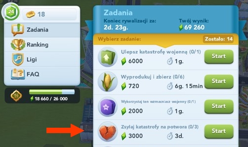 Poniżej zestawienie wymaganych kart katastrof, ilości złotych / platynowych kluczy oraz punkty, które uzyskujemy za atak na danym poziomie.