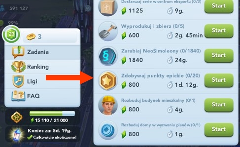 W rywalizacji burmistrzów można dostać zadanie „zdobądź punkty epickie” to właśnie tu można zdobyć te punkty